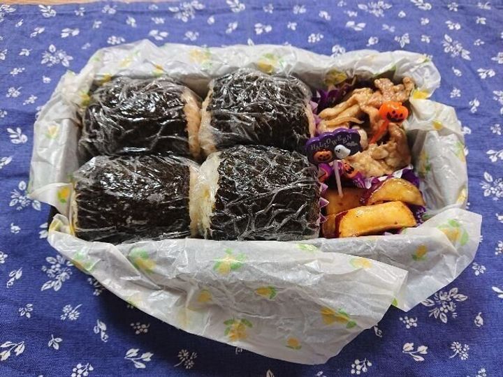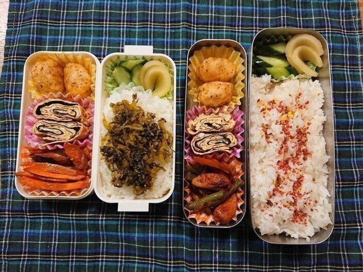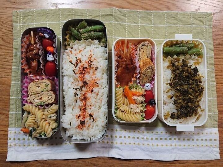 学校行事で出かける日でした。私と大学生(オンラインで授業を受けています)の分も作りました。(写真が間に合わず中学生は持って行ってしまいましたが、全部で4つ作りました)