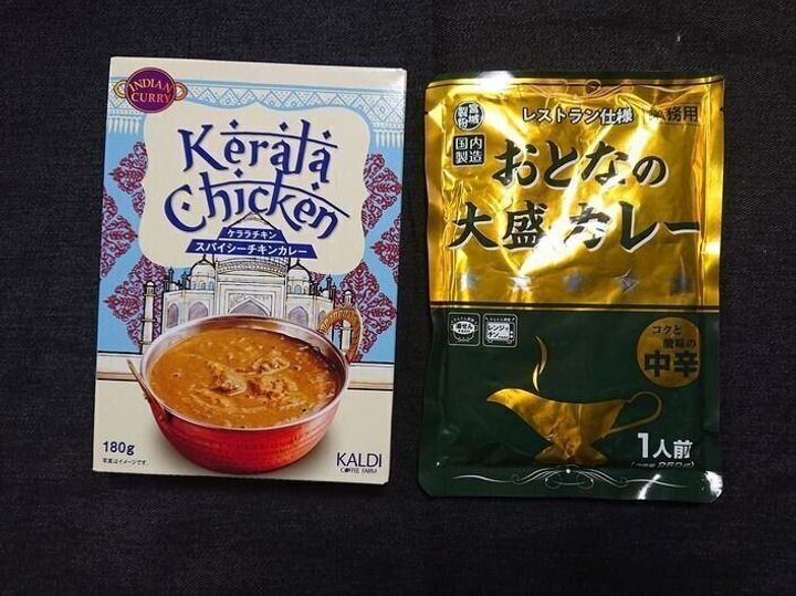 火曜日はカルディのカレー(私用)と業務スーパーのカレー(息子)です。