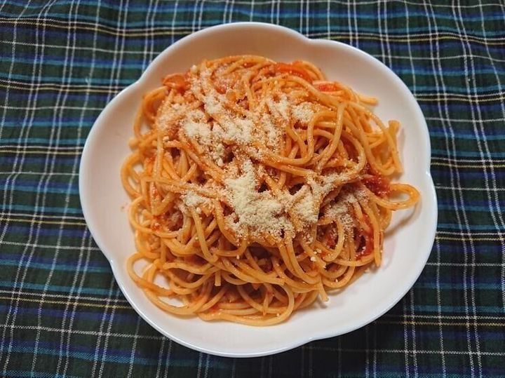 カルディで買ったトマトソースを使ってパスタを作りました。