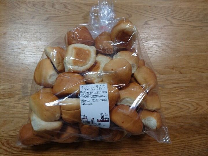 こういう大袋に入っているパンは、ほかのところでも見かけるのですがやっぱりコストコのディナーロールが一番だそうです。