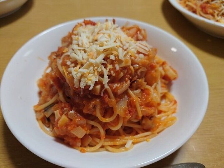 父が、張り切ってパスタを作ってくれました(父の十八番です)。