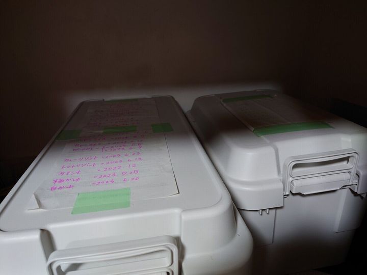 そして、入っているものと日付を書いて貼っています。