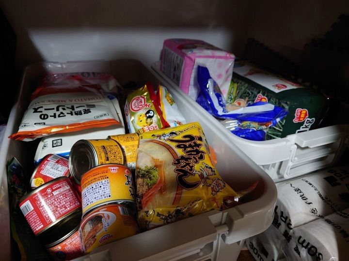 水は常に4ケースを備蓄するようにしています。6人家族だと本当は6ケースはいるのかなと思いますが、置き場所を考えて4ケースで様子を見ています。