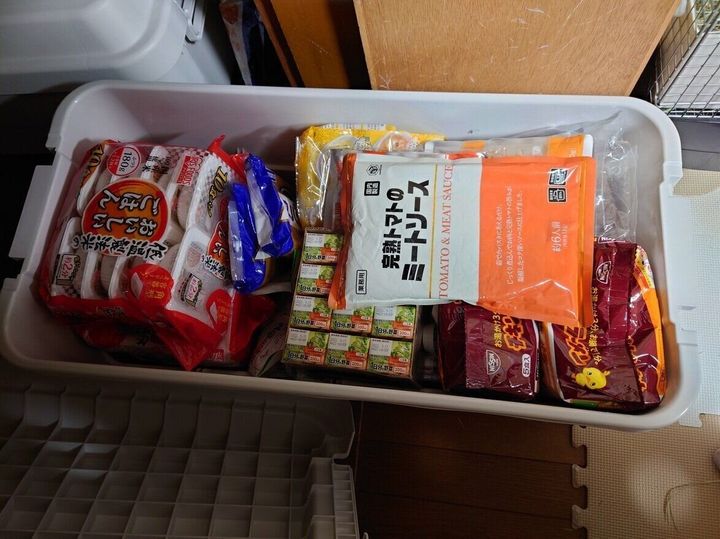 簡単な調理やお湯を沸かすことなどは全員出来るので、レトルト食品や野菜ジュースなど日持ちするものを用意しました。