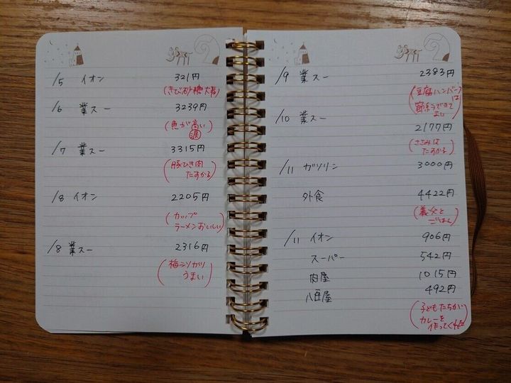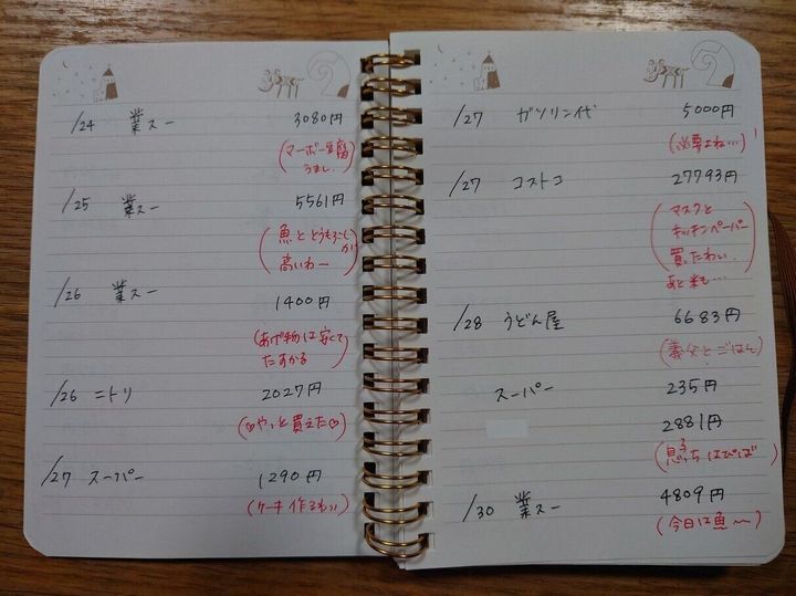 買い物の内容を書いていないので、何を買ったのかはわからなくなります。でも一言書いておくと、その日に魚を食べたとか、ちょっとしたことがわかります。