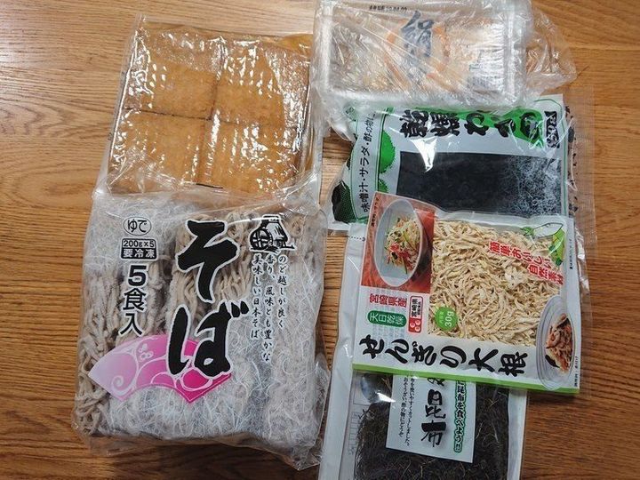 加工食品(ウィンナーとかベーコンとか)はお昼ごはんに欠かせません。冷凍そばもお昼ごはん用(うどんはすべて売り切れてました)。