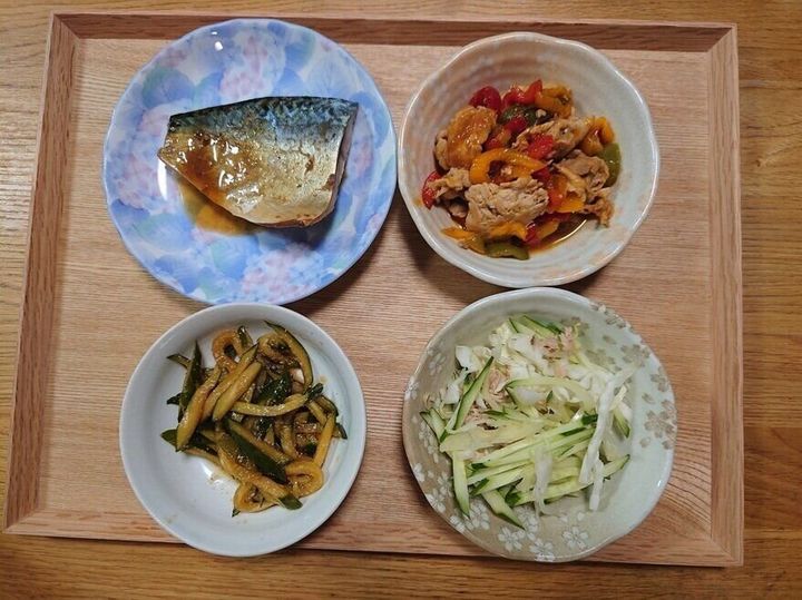 お魚だけだと育ち盛りの男子たちから「えーーーっ」と言われるので炒め物も作りました(笑)