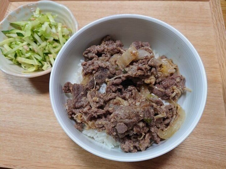 コストコから帰ってきた後、娘の習い事の送迎や仕事もあったので丼とサラダにしました。