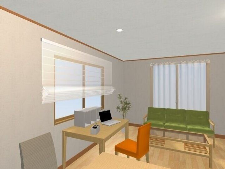 同じ部屋に、それぞれの奥行きの机を置いたパース図を作ってみましたので、お部屋のイメージの違いも参考にしてみてくださいね!
