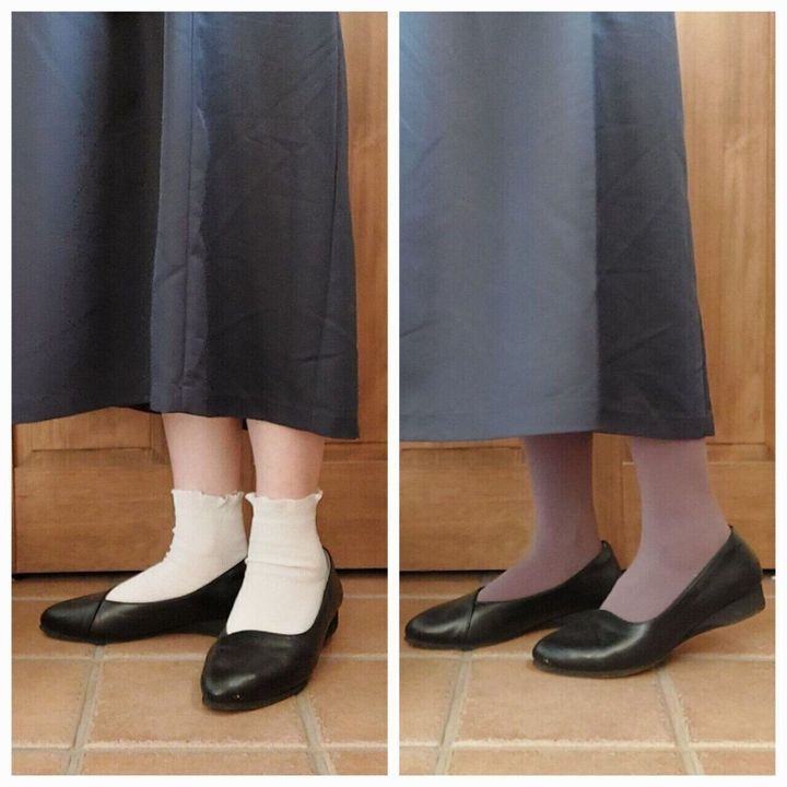白でなくても、透かし編みやシースルーなど、透け感があるショートソックスも合いますので、パンストが苦手な人はぜひ。