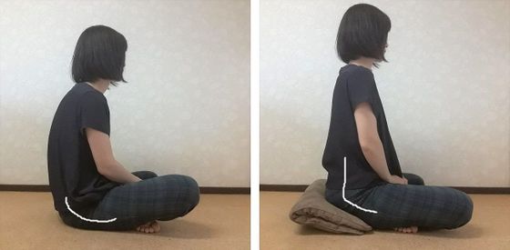 私は、座るときにはお尻の下に座布団を敷き骨盤を起こすようにしています。