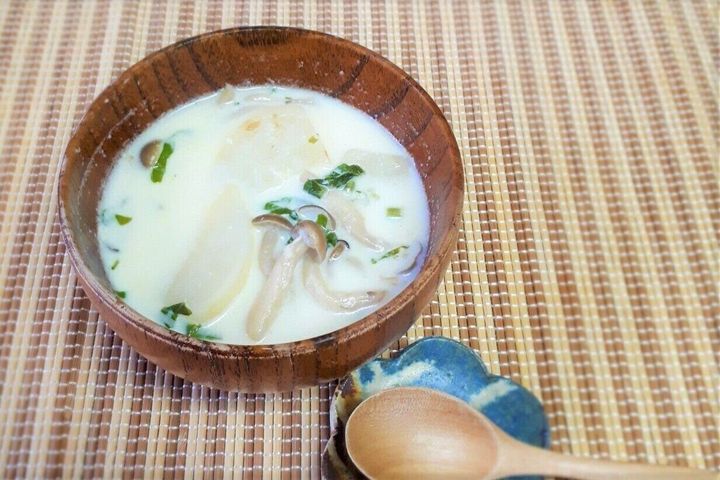 バターやコンソメを使わず、和風だしで豆乳入りのおみそ汁にしても美味しいです。