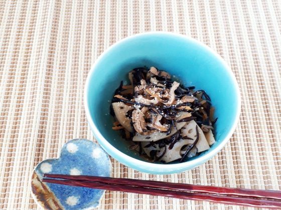 このひじきの煮物は「ま・ご・わ・や・し」入りです。