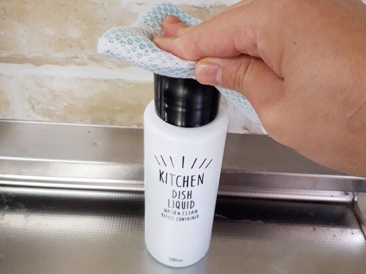 洗剤ボトルを持ちあげることなく、スポンジを押し付けるとちょうどいい量が出る優れものです。