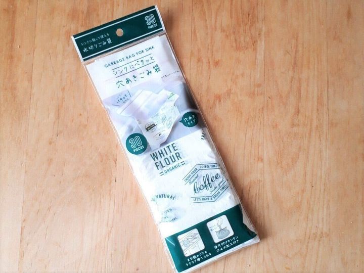 これ以前から、そのまま捨てられるように袋を使っていましたが、こちらは片側をシンクに貼って固定できるので、広げやすくてゴミを入れやすいです。