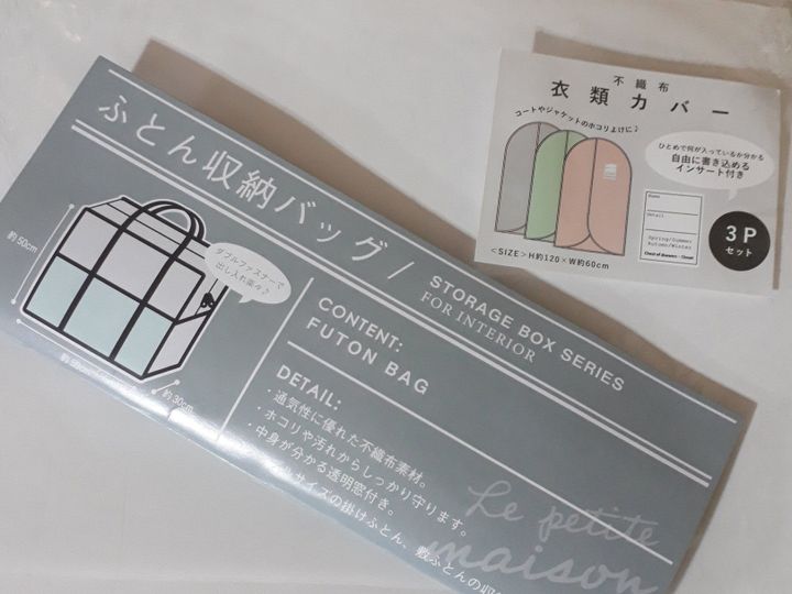 このバッグに入れて、押し入れに並べて入れれば、雪崩がおきる心配もなく安心です。