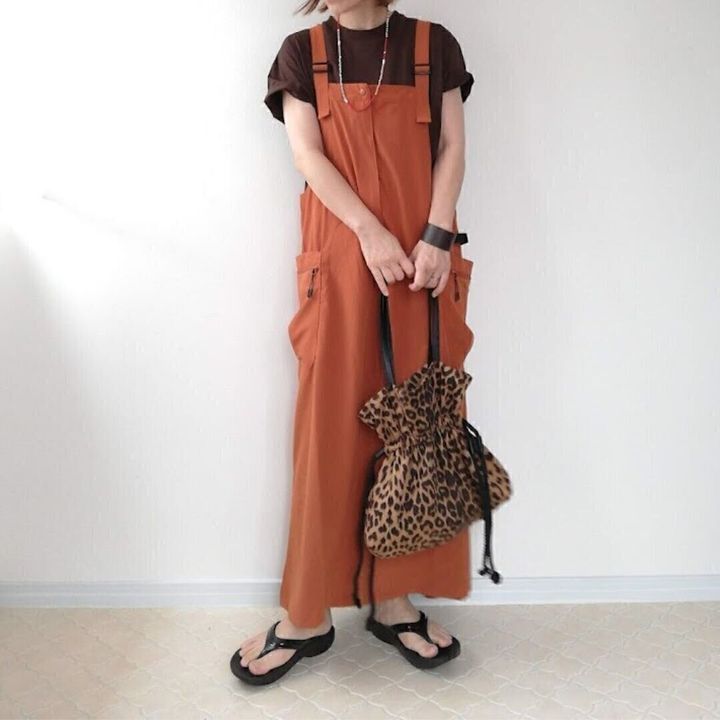 ワークマン「レディースガーデニングジャンパースカート」のインナーに合わせたコーデ。
