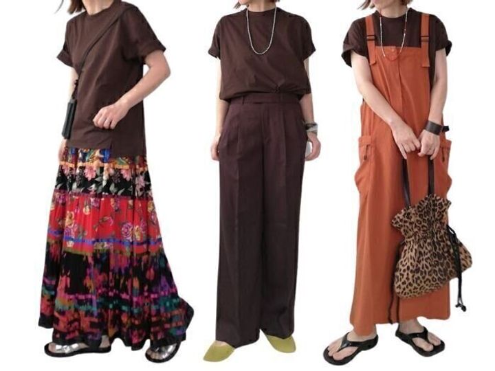 ブラウン×オレンジで、トーンを合わせると洗練された印象に。