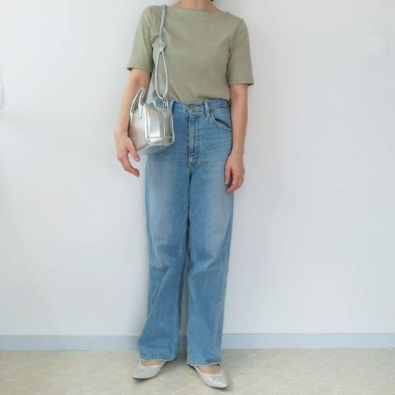 アラフォーのデニム×Tシャツは「リブT」で品よく!