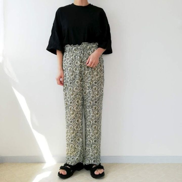 GUで、大人っぽくシックな柄パンツを発見しました。1,990円(税抜)で買える「プリントストレートパンツ」の高見えっぷりに驚愕!春から夏の着回しコーデとともにご紹介します。