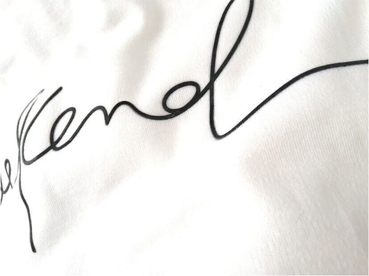 よくあるプリントではなく、刺繍のように文字が浮き出た立体的なプリントで、高見えするところが◎