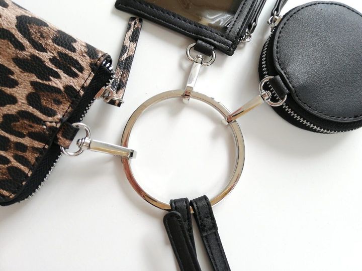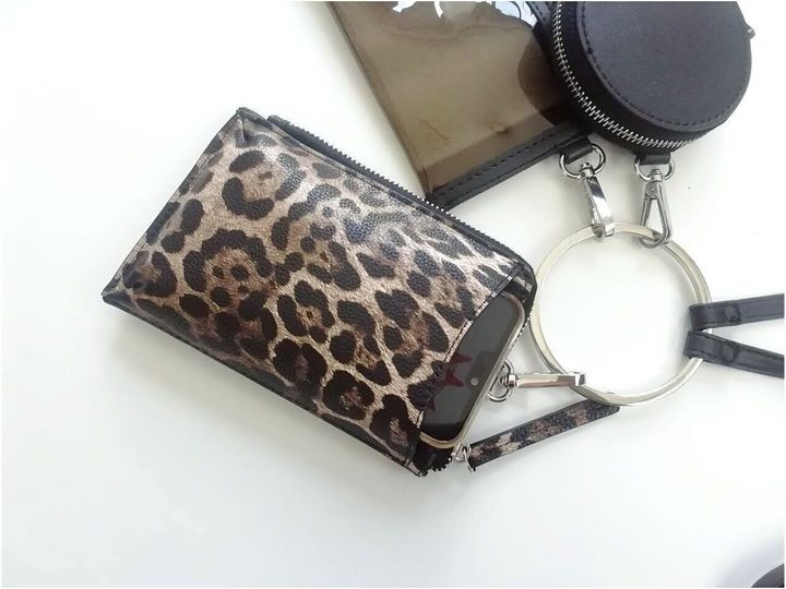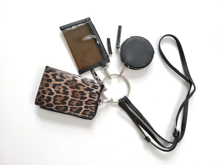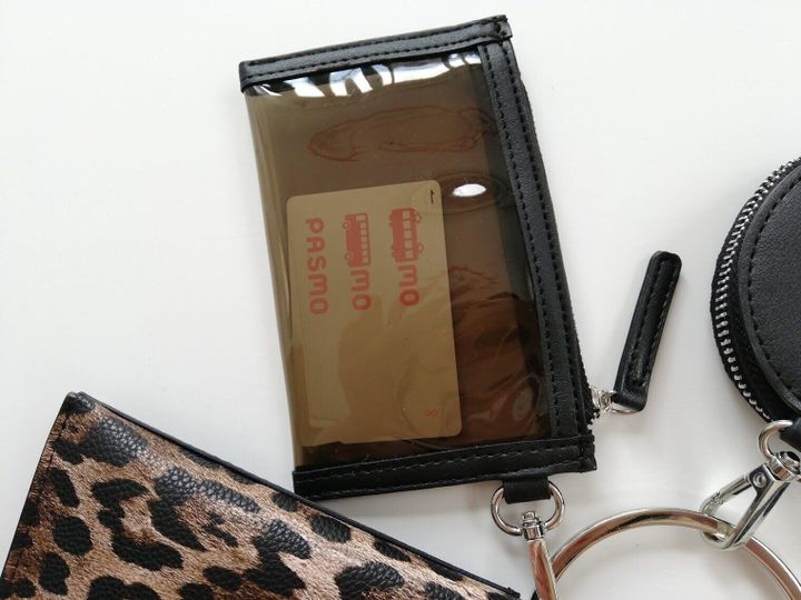 レオパード柄のポーチとクリア素材のスクエアポーチ、ラウンド型ケースがセットになっています。