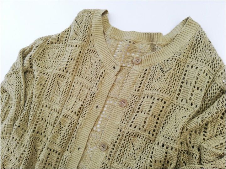 しまむらで見つけた「透かし編み2WAYカーディガン」は、まさに秋まで楽しめそうなアイテム。