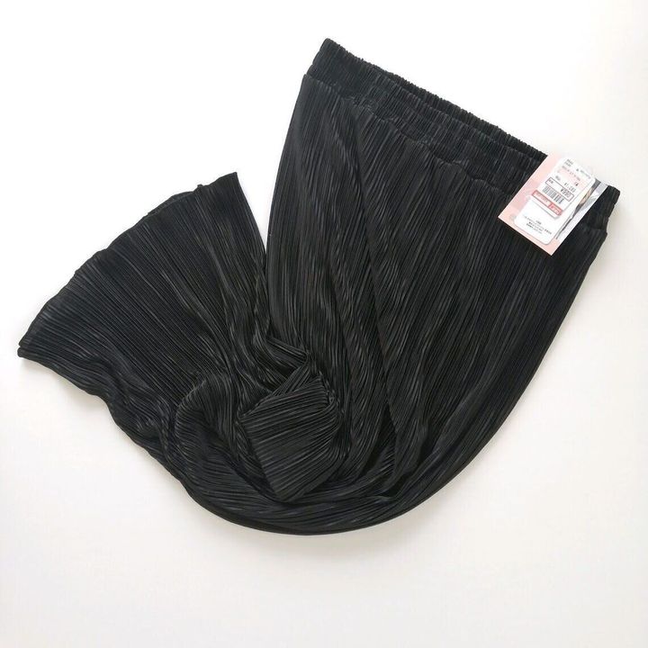 ポリエステル100%で、さらりとした肌触りとツヤのある質感が目を引くスカートです。