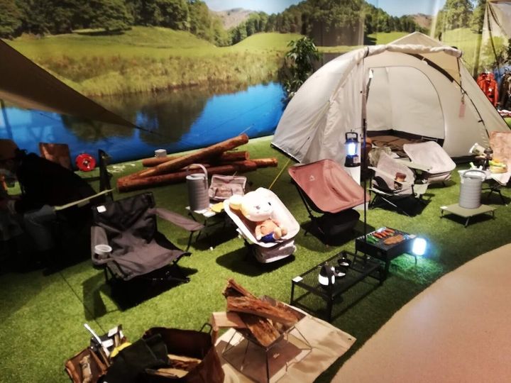 テントやシュラフ、タープなどキャンプ用品の展示にわくわく!