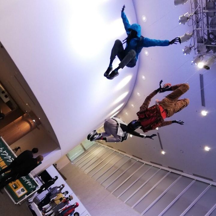 ホールに入ってすぐ、天井を見上げるとこんなマネキンたちが!