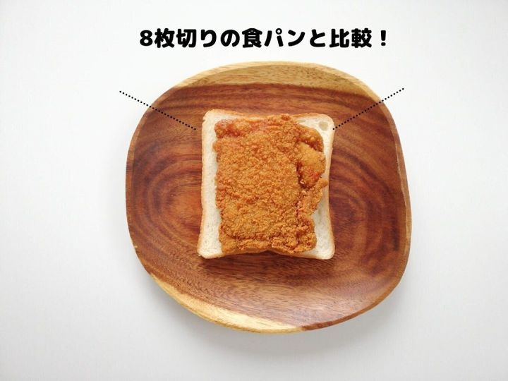 比較のために、8枚切り食パンの上に乗せてみました。