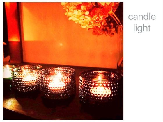 腹式呼吸をしながら、炎や灯り、キャンドルがつくる影を見てリラックスします。