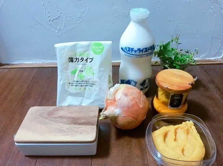 我が家の子どもたちが大好きなメニューがクリームシチュウ。材料は玉ねぎ、牛乳、小麦粉、バター、天日塩、白味噌。分量もざっくり。