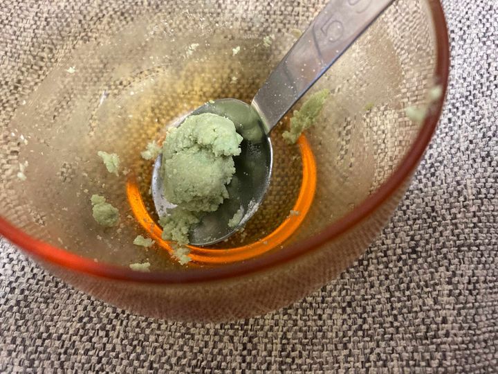 ピリリと辛く、爽やかなお味。粉が白っぽいので、なんかワサビっぽくないーと思ったのですが、練ると薄い緑色に。このほんのりとした色合いも上品で良い感じです。ワサビは粉でいかがでしょうか。