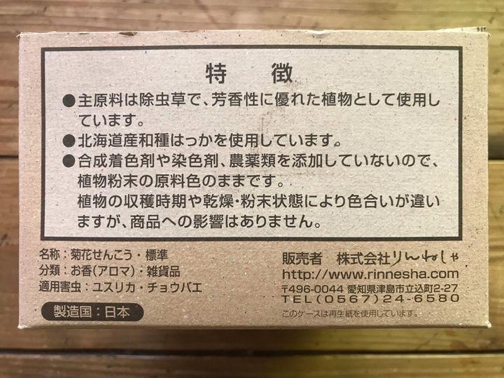 株式会社りんねしゃ「菊花せんこう」標準30巻入り。1034円(税込)。我が家は一夏で1箱半ほど使うことが多いです。