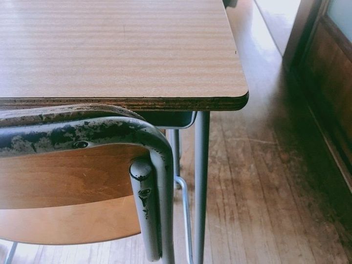 ちなみにコレ、学校で使われている机と椅子と同じモノなんです。このセットを購入した時には、よもやワタシがおウチ学校を開校する事になるとは思ってもいませんでしたが。。。