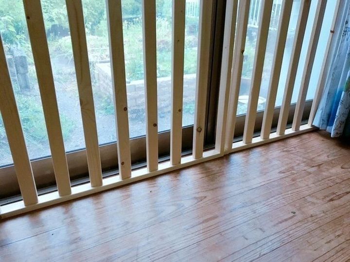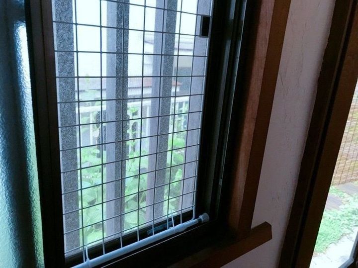 小さな窓には、100均の網、突っ張り棒、結束バンドを使った防止柵がオススメです。↓