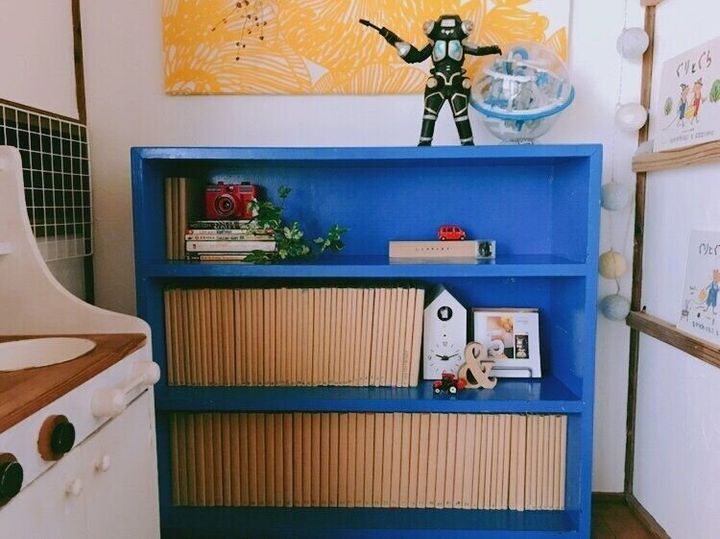 この本棚に限らず、我が家にはオモチャをディスプレイのアイテムとして飾っている箇所が多いです。9割が実用性の中身は、実は実用性のあるものを雑貨のように飾るという事でもあります。