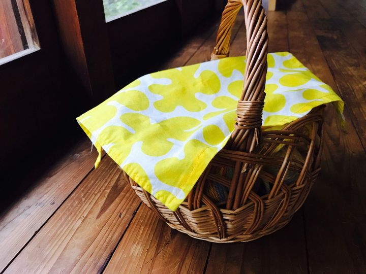 ハギレ、糸、針、糸切りバサミがあればすぐに始められます。どの家庭にもありそうです。ハギレは何でも大丈夫。布の端切れでも、要らなくなった洋服でも。私はお繕いに必要なモノをカゴにひとまとめにしてダイニング横の棚に置いています。すぐ取りかかれて、この見た目にテンションも上がります。