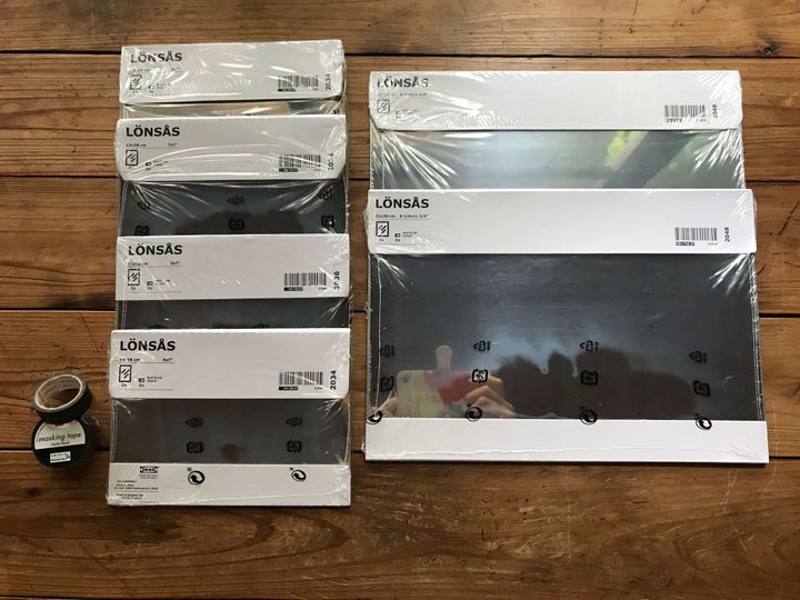 貼るタイプのミラー(私はIKEAのロンスオースを使用)/マスキングテープ黒(ダイソー)/カッター/セロテープ