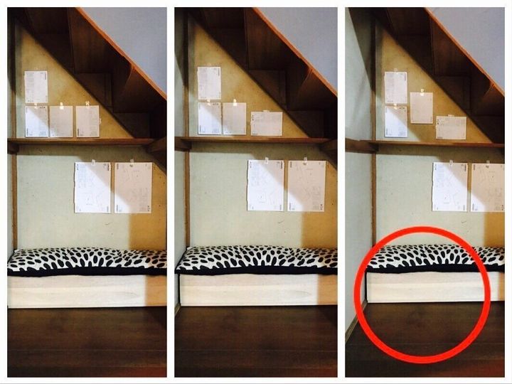 元雑貨バイヤー、サンキュ!STYLEライターの朔花です。『狭くても快適に住むためのマンションライフblog』の『デコマド風鏡をつくってみた!IKEAの鏡で簡単DIYの方法を紹介 』を参考に子どもたちの秘密基地、階段下収納に『デコマド風鏡』をDIYしました。