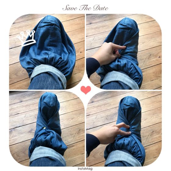 なので、覆ってしまえ〜と、要らなくなったズボンの裾を使い、巾着型に縫い、フェザーブーツに被せてみました。