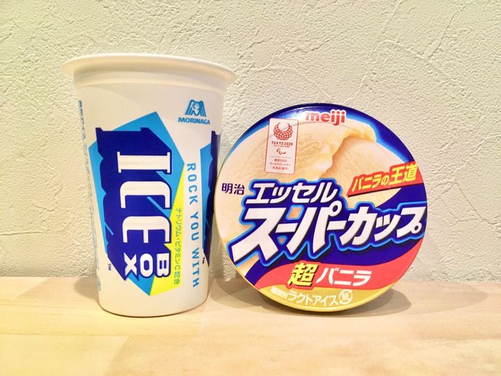 まずは、今回使うアイスのご紹介です。森永製菓の「アイスボックス<グレープフルーツ>」と明治の「エッセル スーパーカップ 超バニラ」。筆者(アラフォー)の学生時代からあるド定番のアイスです。近くのスーパーで半額セールを行ってまして、アイスボックスは50円+税、スーパーカップは70円+税で購入しました。安い!
