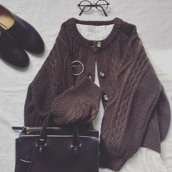 ざっくりカーディガンと、黒の小物で。