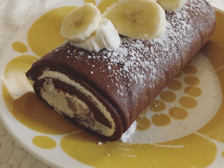 バナナを挟み、巻いて1時間冷蔵庫に冷やすと完成