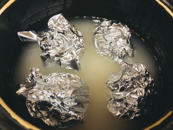 鶏肉意外はアルミホイルに包みます。鶏肉はそのままご飯の上に乗せますよ。