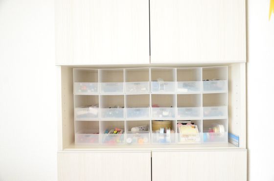 ポイントは6つ引き出しを間引きして3つにしているところ。こうすると、上から見たときに何が入っているかすぐわかります。