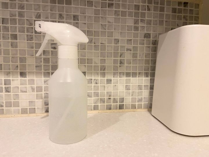 鏡に手垢や水垢がついているときに、炭酸水の入ったスプレーボトルをシュッとひと拭き。