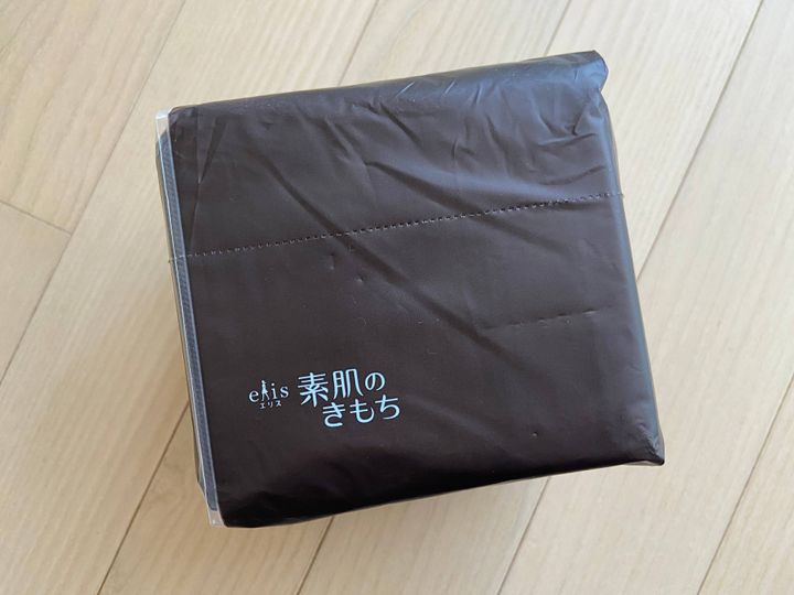 ドラッグストアで見つけたのはエリエールの生理用ナプキン「素肌のきもち」です。