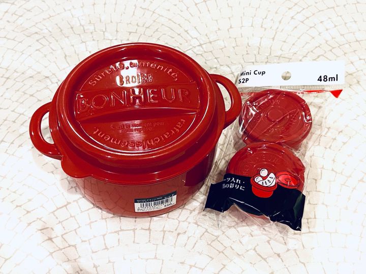 ストウブと素材が違うとはいえ、こんなに可愛いデザインで100円はほんとうにコスパよすぎ!